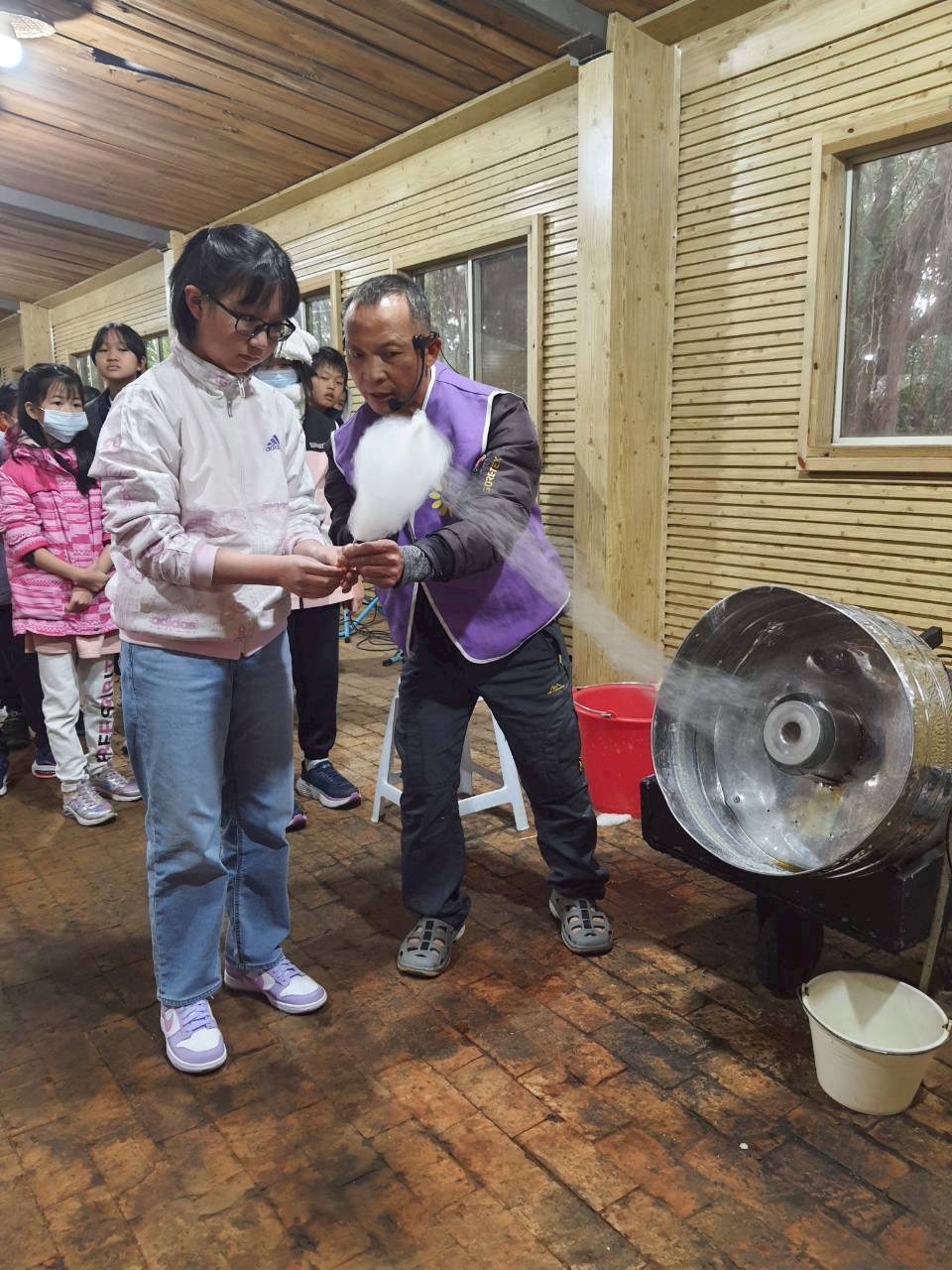 重頭戲來了,我最愛的自己捲棉花糖,不過這個真的好難用喔⋯⋯連老師們都沒很成功,還捲棉花糖捲到出門口了,是要離家出走嗎?ㄏㄏㄏ😆