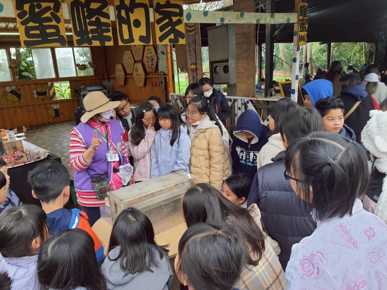 一開始導覽阿姨,介紹了蜜蜂的家,還可以親自嚐嚐新鮮的蜂蜜喔,但我只擔心我會不會被蜂蜜親吻……..😮‍💨