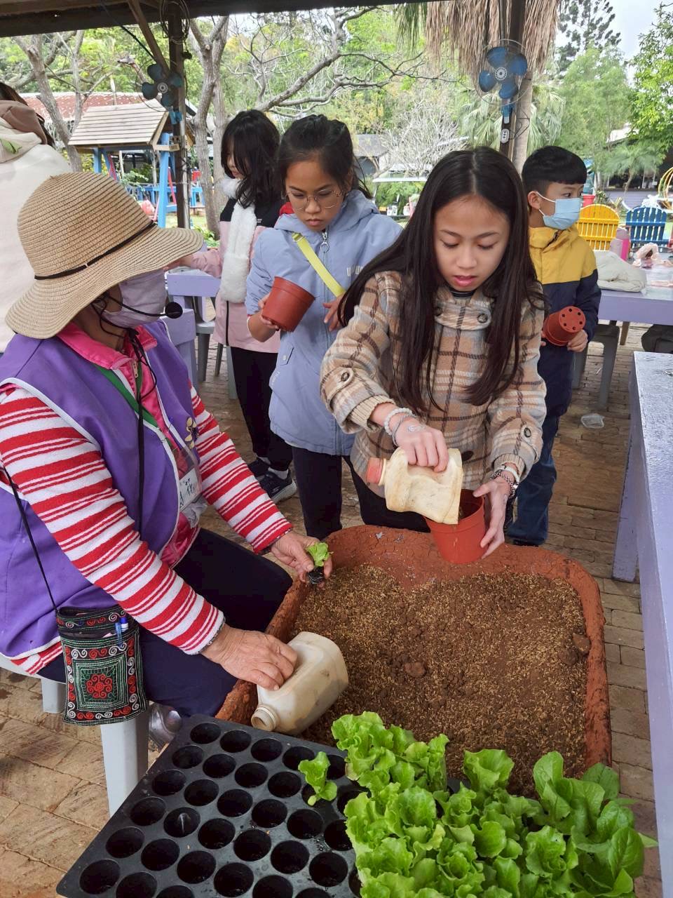 導覽阿姨親自教我們,土壤要裝到那裡,再給予少許水分,就有自己完美的小盆栽了🎍
